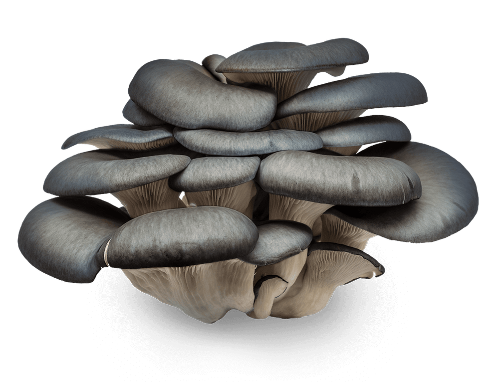 Usually grows in large clusters, they take on the typical shelf like shape of other Oysters. Size and shape and color can vary immensely depending on growing conditions, though typically deep blue to grey in color. With a hearty texture, this mushroom holds its shape well, making it the chef favorite.