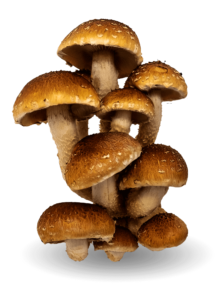 Mild in flavor, they feature robust, thick-stemmed fruits in gorgeous clusters. These are ideal for customers who prefer a larger, sturdier mushroom with more culinary versatility. Delicate greyish–brown colored caps with beautifully contrasting white stems are found on mature specimens. Our in-house favorite!